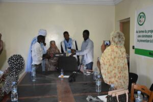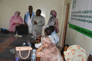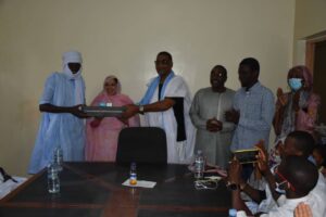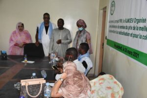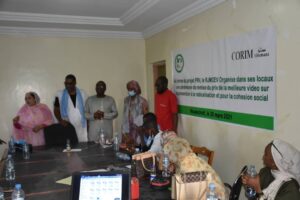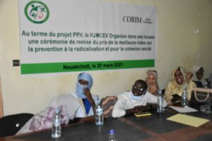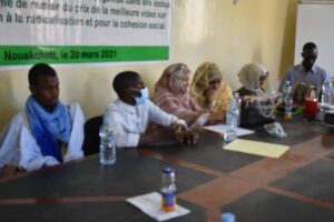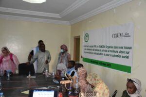 Une cérémonie dédiée à la remise de trophée aux participants au concours de la meilleure vidéo a été organisé le 20/03/2021 à 17h au siège du RJMCEV. Cet événement qui marque la fin des activités des projets de renforcement des capacités de la société civile grâce a un financement du projet corim/expertise France. C’est dans ce cadre que s’inscrit cette cérémonie consacrant la récompense de la meilleur production sur la cohésion sociale trois groupes de jeunes journalistes étaient en compétition pour gagner ce prix. Un jury de trois membres a procédé à l’examen des productions en compétition avant de porter à l’intention du public les résultats de ce concours. Un public impatient de connaitre la décision du jury a plongé la salle dans une atmosphère de suspens. Après une séance de projection des vidéos suivie avec attention par le public, la proclamation des résultats du concours a eu lieu. Ainsi le groupe 2 a été déclaré gagnant suivi du groupe 1. Le premier prix est constitué du matériel de tournage vidéo. Le deuxième d’un visite des locaux de la Télévision nationale EL MAURITANIA. Quand au troisième groupe une attestation d’encouragement leur sera délivrée. Les membres du jury ont remis directement les récompenses aux heureux gagnants. A cette occasion, le coordinateur du RJMCEV, MR Cheikh Tidiane Dia, a adressé ces félicitations au nom de son organisation tout en remerciant vivement le bailleur CORIM et le la partenaire GRET pour les efforts soutenus consentis pour la réussite du projet PRV. Rappelons que ce projet conçu pour une durée de 5mois s’est achevé en mars avec un décalage lié a la pandémie du coronavirus. Plus de 100 jeunes ont bénéficié de formations en journalisme social, en communication, à la prévention contre la radicalisation, l’extrémisme violent, la cohésion sociale. Des relais sociaux ont aussi été formés dans la prévention et la sensibilisation. Le rôle de tous ces bénéficiaires sera d’exercer le métier de communicateur, pourvoyeurs d’informations à travers les réseaux sociaux et autres médias locaux. Grâce aux formations obtenues ils sont outillés pour prévenir, informer, sensibiliser le public et le préserver contre toute action nuisible. Former des jeunes journalistes, bloggeurs et relais sociaux permet d’adapter les vocation à l’ère des nouvelles technologies de l’information et de la communication.
