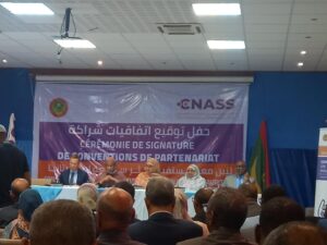 Dans le mot qu’elle a prononcé à l’occasion de cette signature, la ministre de la santé a exprimé sa joie de voir les partenaires financiers et techniques prendre part à cet important évènement entrant dans le cadre du renforcement des activités de la CNASS. Mme Naha MintHamdiOuldMouknass a ajouté que la CNASS « est une structure dont la création répond à un engagement ferme de Son Excellence le président de la République, Monsieur Mohamed Ould Cheikh – El Ghazouani visant l’atteinte de la couverture de santé universelle par la prise en charge des personnes travaillant dans le secteur informel. »
